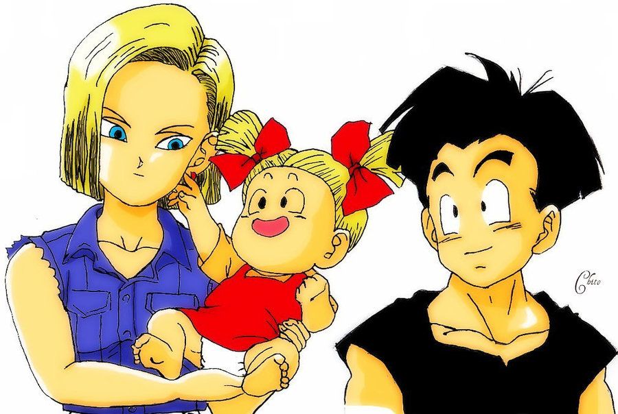 [Image: Android 18 and Krillin fanart depicting a family moment]