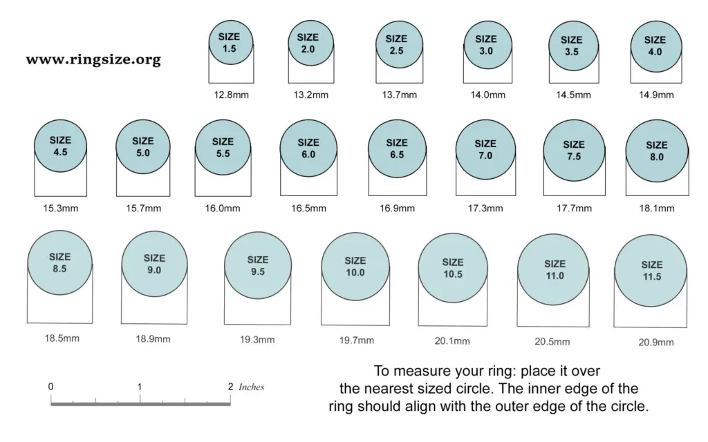Ring sizing charts are available online and can be used to estimate your ring size at home. These charts typically involve measuring the circumference of your finger or the diameter of an existing ring. While ring sizing charts can be helpful, they may not be as accurate as professional sizing, so it’s best to use them as a starting point.