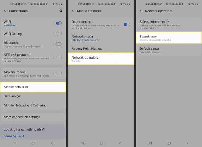 [Image: Screenshot of Android settings menu showing Mobile Networks option]